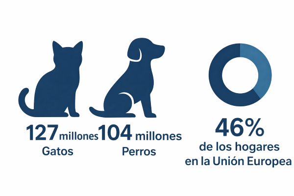 El 50 % de los hogares europeos tienen animales de compañía: el 46 % son perros y gatos, y el 4 % restante son otros animales de compañía. En cifras, esto supone 127 millones de gatos y 104 millones de perros, lo que convierte al continente en uno de los mayores mercados de «cuidado de mascotas» del mundo.