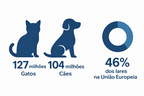 50% dos lares europeus têm animais de estimação: 46% são cães e gatos, e os 4% restantes são outros animais de estimação. Em números, isso significa 127 milhões de gatos e 104 milhões de cães, o que torna o continente um dos maiores mercados de “cuidados com animais de estimação” do mundo.